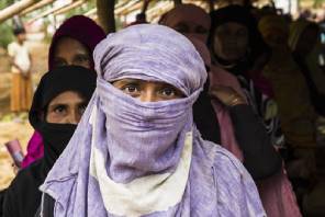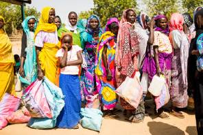 Sudanese refugee women wait at a food distribution site in Chad.  (Photo by Dominique Catton/European Union) Photo used under CC BY